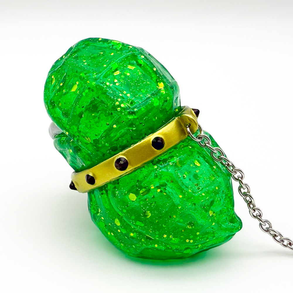 3つ目はviviさん×エンビーさんのPINU”ミュータント”です🥰 先日のデザフェスで華々しくデビューした”ピーナッツの犬”のソフビです😍 丸っこいピーナッツボディに首輪が付いてお散歩できそうな感じがとてもイイです🥰 デザフェスではかなりの人気でしたが、そんなPINUの新種がグリーンラメの”ミュータント”です😊 何かの力が宿って変態したピヌなのでしょうか?神々しさすら感じますよね🤔