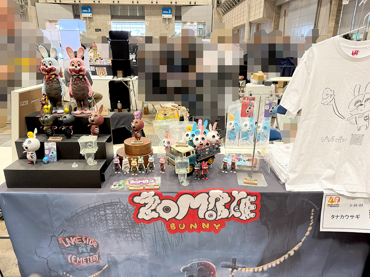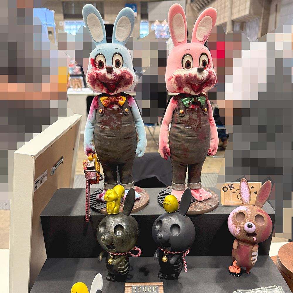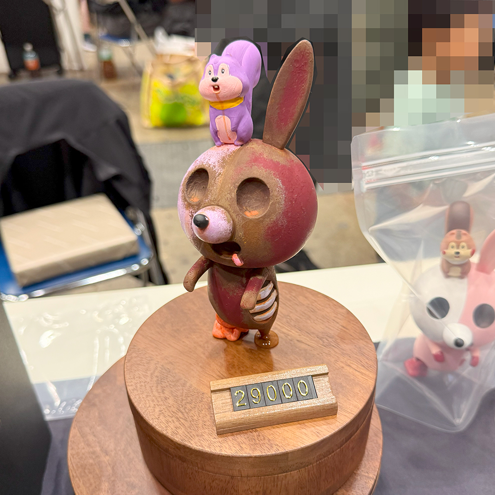 ワンフェスでこんなにもじっくり回れたのは初めてじゃないでしょうか🤔 いつもは暑くて疲れ果てて早めにギブアップする感じでしたが、今回は会場が涼しくて快適だったので疲労感も軽減されたのかと思います😅 まずは”タナカウサギ”さんのブースです😊 僕自身サイレントヒル(ホラーゲーム)が大好きで、若いころは熱中してましたが、その中に登場するキャラクター”ロビー”くんのフィギュアが陳列されていました😲 可愛いウサギの着ぐるみの口元が血まみれ… 不思議な感覚になりますよね🥰 また”ゾンビバニー”は初めて実物を拝見しました!特に「赤錆」テイストのコラボ作品はおどろおどろしさが全開でカッコよかったなぁ🤔 次のイベントではゾンビバニーも狙っていきたいと思います🥰 次に気になったのが”MARK’S”さんのアンバーくん😲 実際に触らせていただきじっくり拝見できました🥰 傘お化けがカッコいいスニーカーを履いているという斬新なキャラクターデザインもイイ感じ😍 造形も細かくオシャレなソフビですよね🤔 その他にもたくさんの魅力的な作品を拝見することができて大満足でした🥰