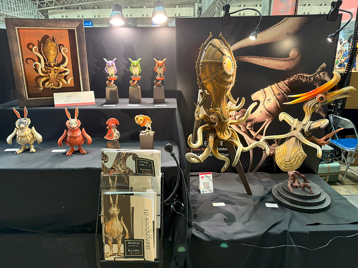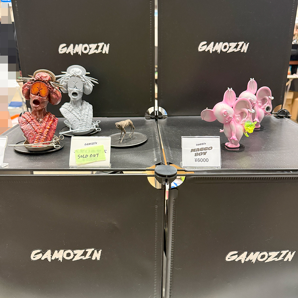 ソフビ作品だけでなく様々なジャンルの作品が一堂に会しているのがビッグイベントの魅力でもあります🤔 新たな出会いを求めて更なる探索に出てみました😊 あっと驚くアイデア、ソフビとはまた違った質感や造形を堪能できて、凄く貴重な経験になりました🥰 中でも”GAMOZIN”さんの作品はグロくて不思議な感覚にもなる素晴らしい作品でした😲 特に和風の女性のフィギュアは、よく見ると医療器具に鎮座して、その頭にはメスのかんざしをしています😱 思わず見入ってしまうアイデアと造形美… やはり”完売”していましたね😅