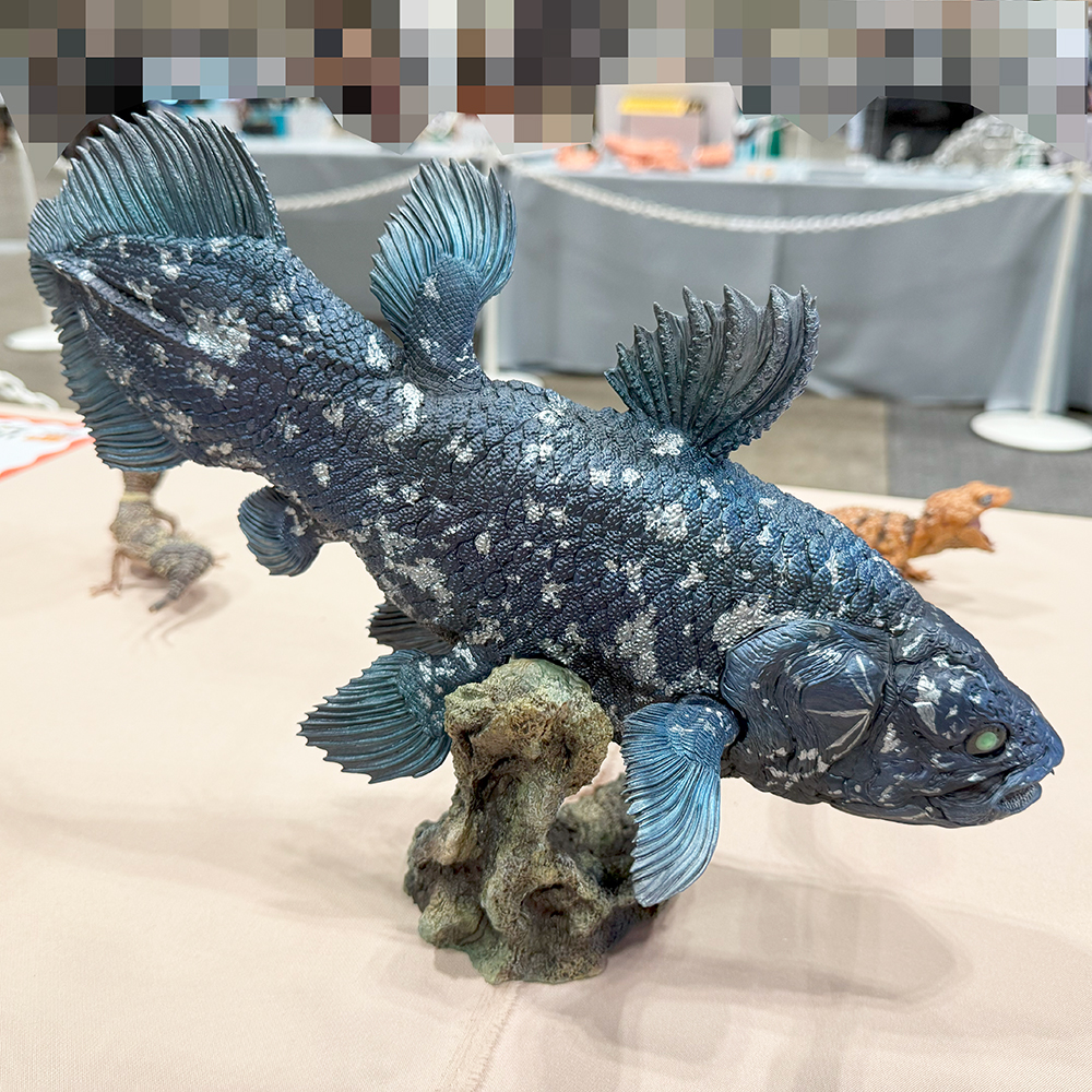 1日の締めくくりに特別企画”いきものワンフェス”を見て回りました🥰 僕にとっては、海洋堂さんと言えば… 生物フィギュアですよね🤔 僕が若いころは”チョコエッグ”という食玩があってそのおまけ(フィギュアが主役?)が海洋堂が造形を担当している生物フィギュアだったのです🥰 思えば… 僕のコレクション癖はこのころからですかね…😅作品は多岐にわたっていて、超リアルで迫力が凄いものから可愛いキャラクター化したものまで数多くの作家さんの生物系フィギュアが展示されていました🤔 これだけ集まると圧巻ですよね😲 かなり堪能できました🥰 その中でも最も気になったのは”シーラカンス”のフィギュアです。古代魚らしいゴツゴツとした硬そうな質感と緻密なウロコの造形とリアルな塗装… 躍動感があるヒレの動きはまるで生きて水の中を漂っているかのようです😍