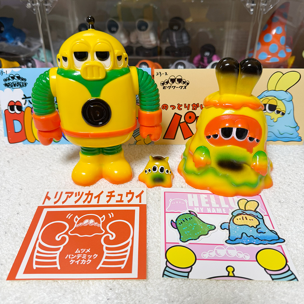 パゴラ”レトロ怪獣カラー”は色彩自体はディクターとお揃いで、ベースカラーはイエロー、身体の溶けている部分にオレンジとグリーンが施されてグラデーションっぽく綺麗なカラーリングになっています😲 ディクターとお揃いのレトロ怪獣カラーで単色使いの懐かしいおもちゃ感はあるものの、特にグリーンとオレンジの塗装が淡く吹かれているため、幻想的な雰囲気と”ドロドロ”な柔らかい感じを醸し出しています😊 見ていてほのぼのする可愛い作品ですね🥰