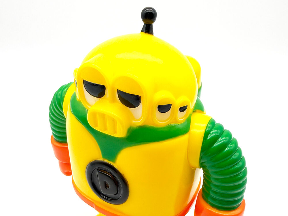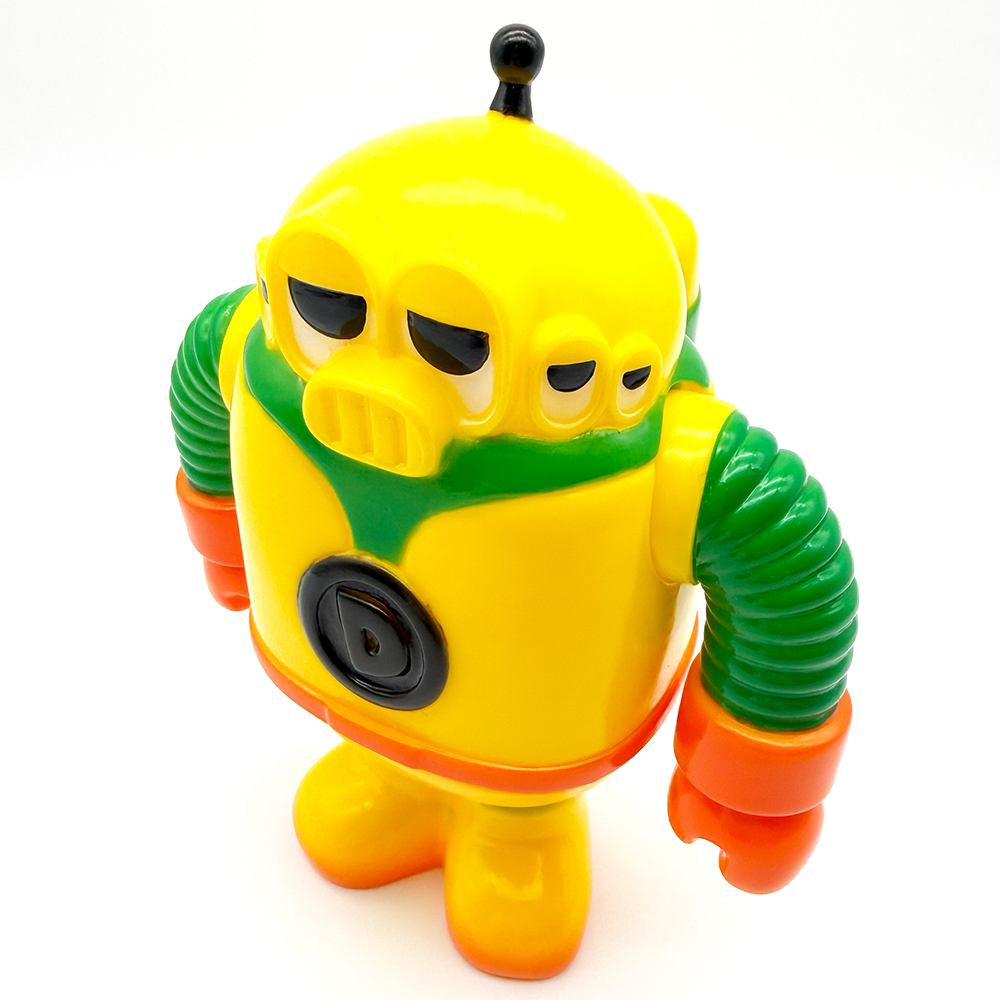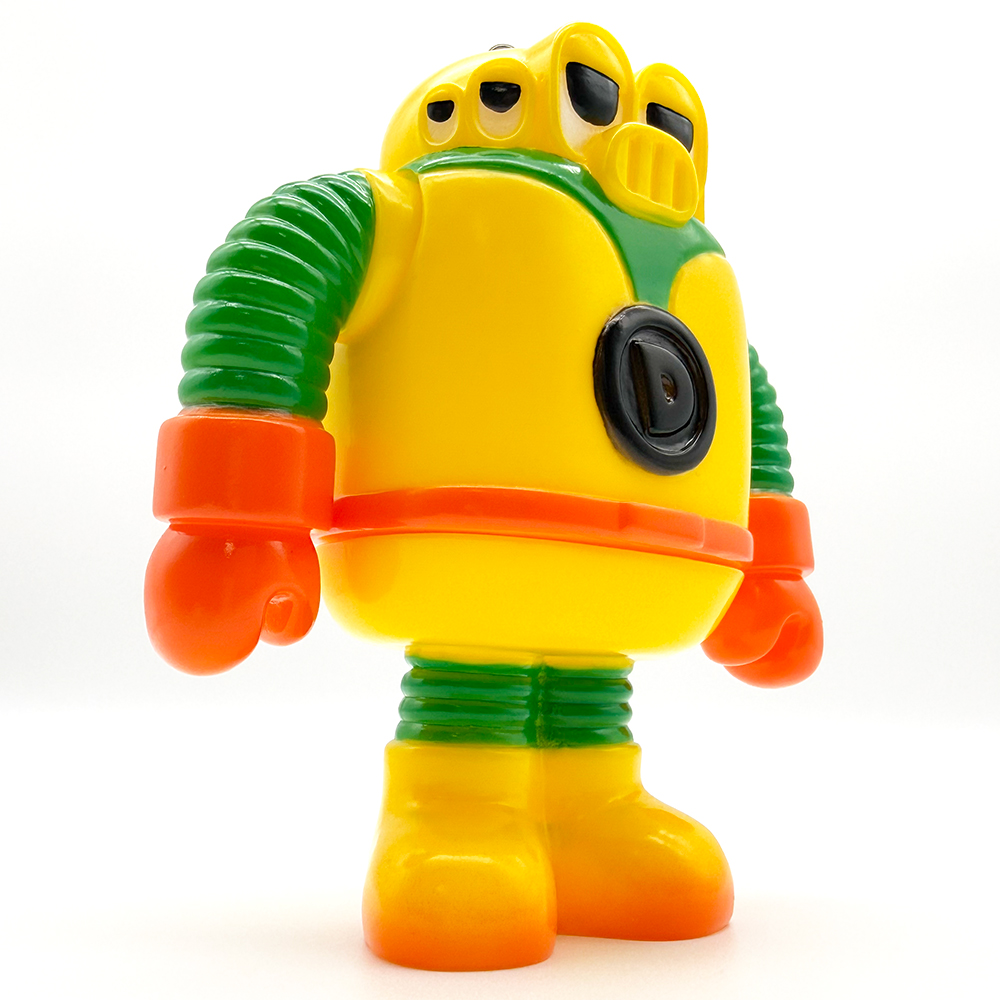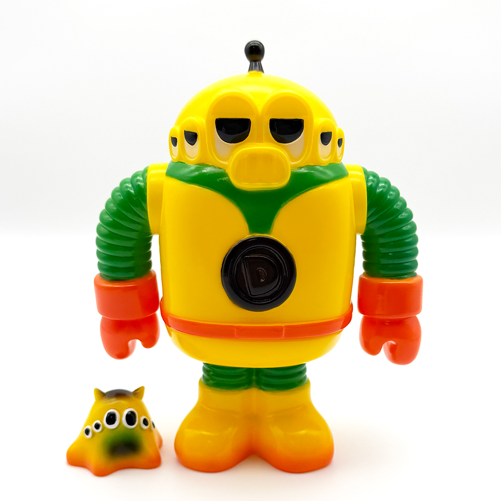クラウドファンディングでお迎えした”ディクター”です🥰 ベースカラーはイエロー、腕と足部分がグリーン、手とベルト部分がオレンジで陰影も少なめな仕上がりです🤔 単色での塗分けとカラフルで明るい色彩が”おもちゃ感”満載な印象で、まさに昔懐かしい”怪獣のソフビ”を彷彿とさせるイメージとなっています😲 胸部の「D」マークと頭のてっぺんのアンテナのブラックがアクセントとなり全体を引き締め、可愛いながらもメカっぽいイメージが映えますね🥰