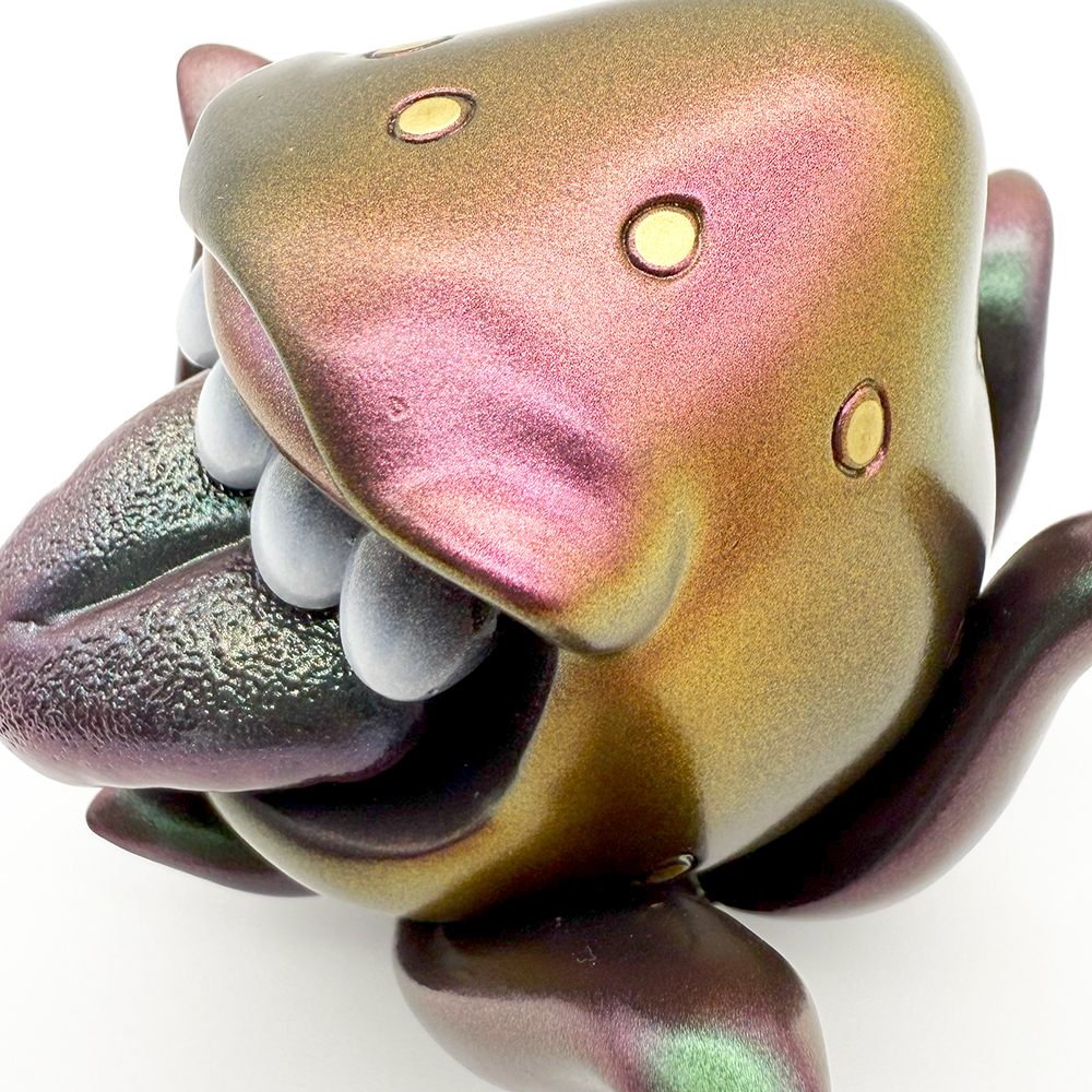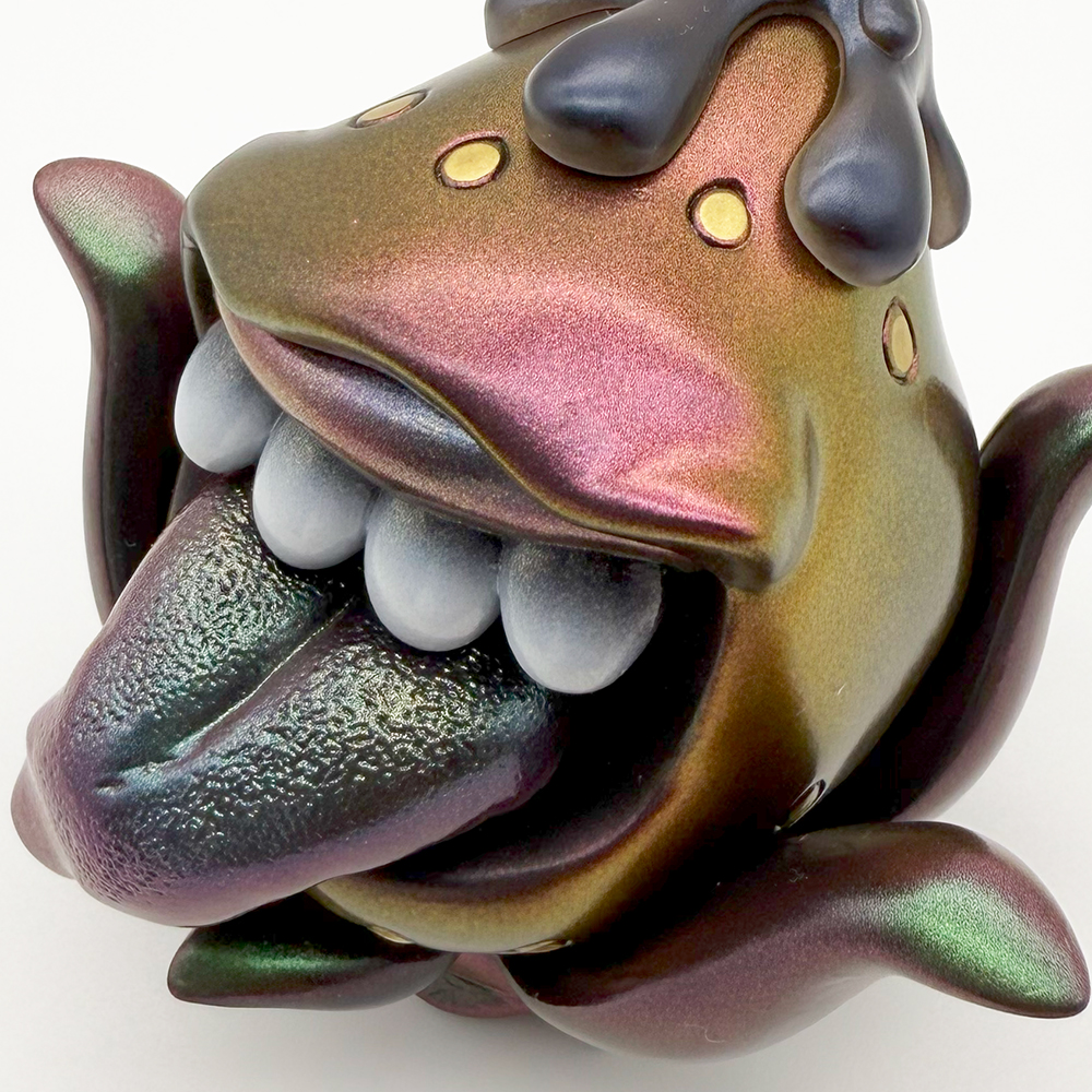 ”みかんかっぱSHOWROOM 5周年記念”でお迎えしたKUCHIGOです🥰 カッコいいメタリックチゴの第2弾は何と”マジョーラカラー”😲 光の当たり方によって様々な色合いを見せてくれます😍 しかも良く見ると… 果実部分はレッド、ヘタ部分にはグリーンの要素が入っていて”メタリックだけどクチゴカラー”なのです🥰 歯の根腐り感と舌のダークなイメージが怖キモで凄くイイですね😍 ヌメリポイントもかなり高めです😊