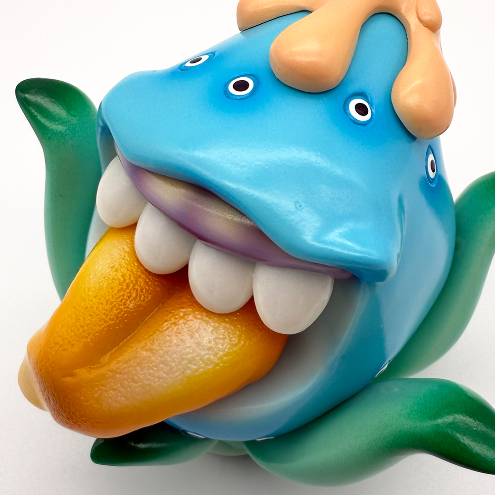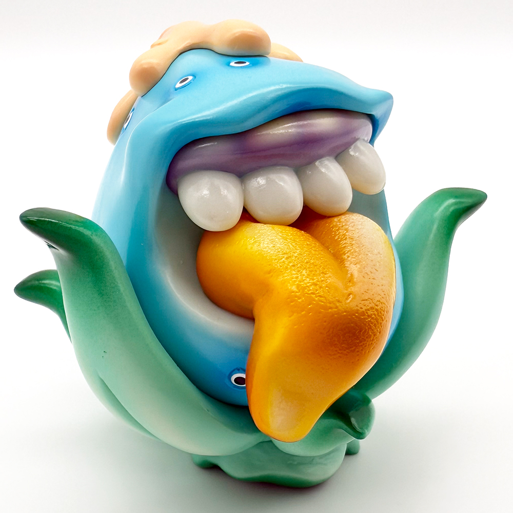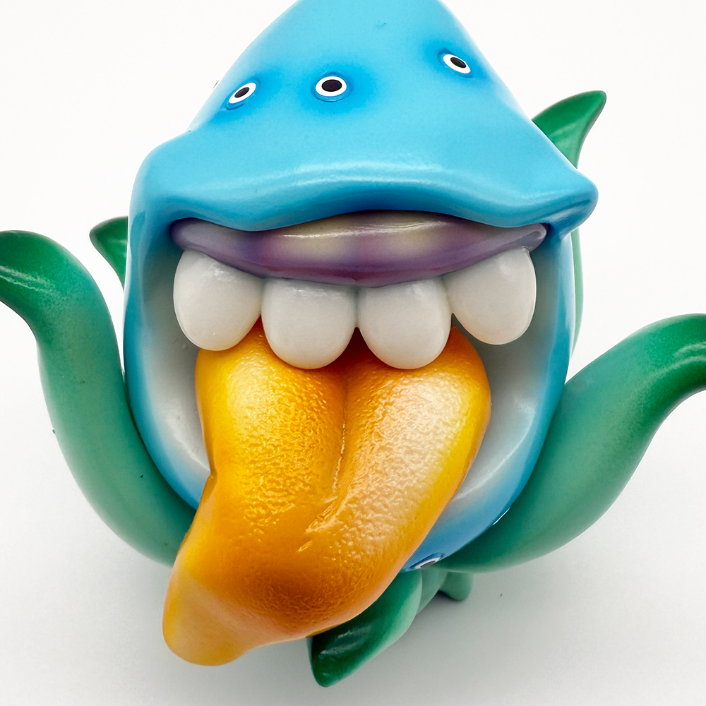 ”ワンコン Vol.5”でお迎えしたKUCHIGOです🥰 このKUCHIGOの種子部分は”眼”になっています😲 舌はオレンジっぽく歯茎も紫色に傷んでいて、まるでアンデッドのような感じに仕上がっています😊さらに眼の周りが少し濃いめの塗装なので何かに飢えた感じの眼差しでゾンビ的な雰囲気を醸し出していますよね😍 何か妖怪的な佇まいで今までにない存在感醸し出している… ある意味、新種の中でも希少種の怪しいKUCHIGOなのです😱