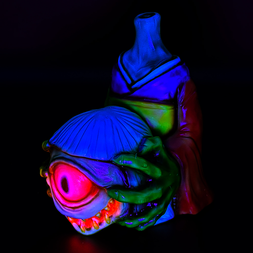 ”着物妖怪の三姉妹”の1人… まちこです😊 まちこの最大の特徴は「自分の首を両手で持っている」ことです😱 海外の幽霊騎士で”デュラハーン”がありますが、まちこは”和製デュラハーン”でしょうか🤔 異様に大きな手でガッチリ頭部を抑えていますが、抑えていないと… と怖い想像もできちゃいますね😱 メインのよしこに比べ登場回数は少ないものの、斬新な塗装やサプライズ的なカスタムのラインナップが印象的ですね🥰