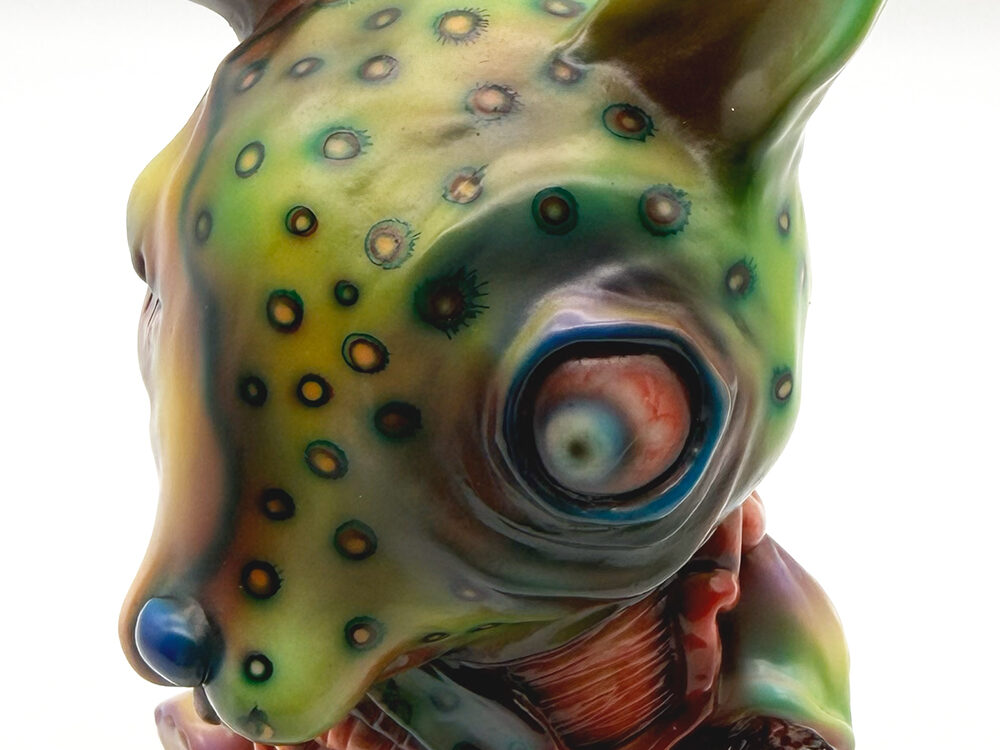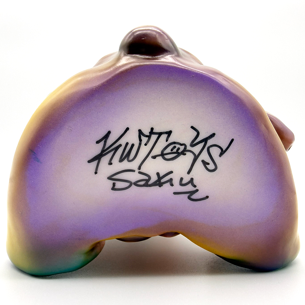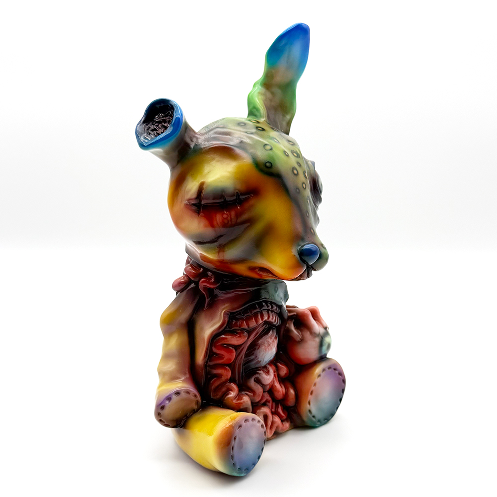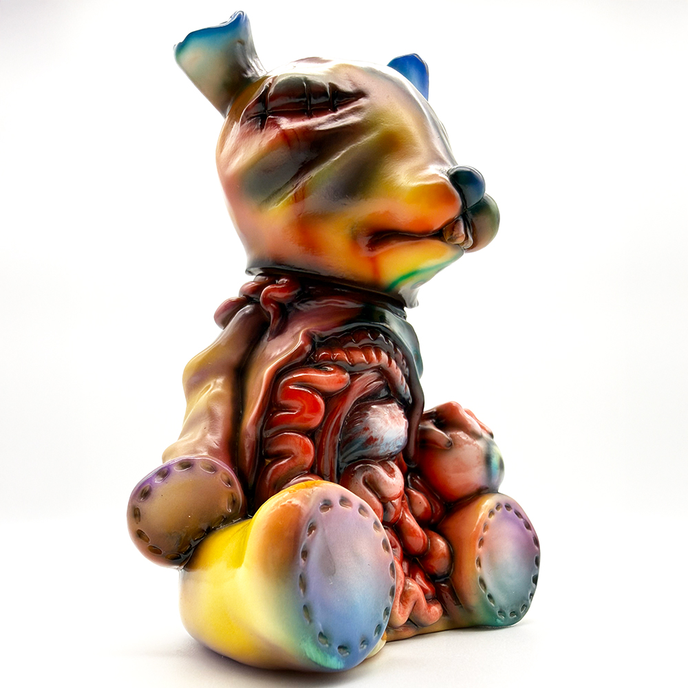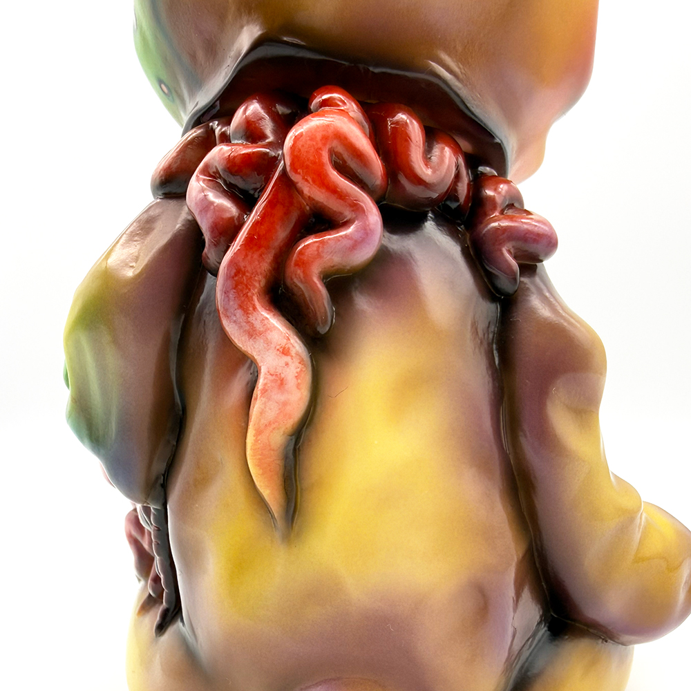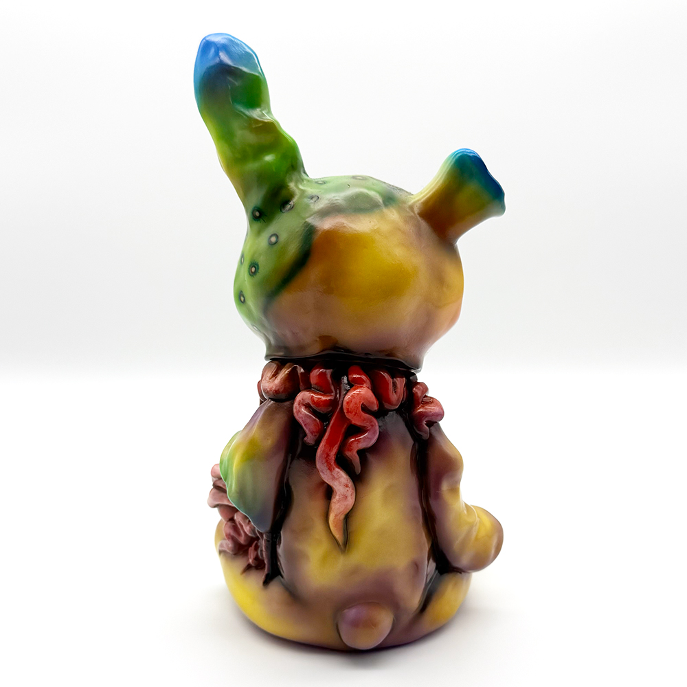 “GOOD VIBES LIVE Vol.2″でお迎えしたメロディはかっこわらい雑貨店の櫻井さんによるカスタムペイントバージョンです🥰 カスタムの要望は「血塗れでキモい要素も入れる」という内容で、ベースの雰囲気は若干残しつつ、顔の左半分が毒に侵されたような… ウィルスに感染したかのようにブツブツに爛れていて、さらに右側はボコボコに殴られたかのようにアザや血の跡が滲んでいます😱 さらに全身にも傷みがあり、ゾクッとくる感じに仕上がっています😍