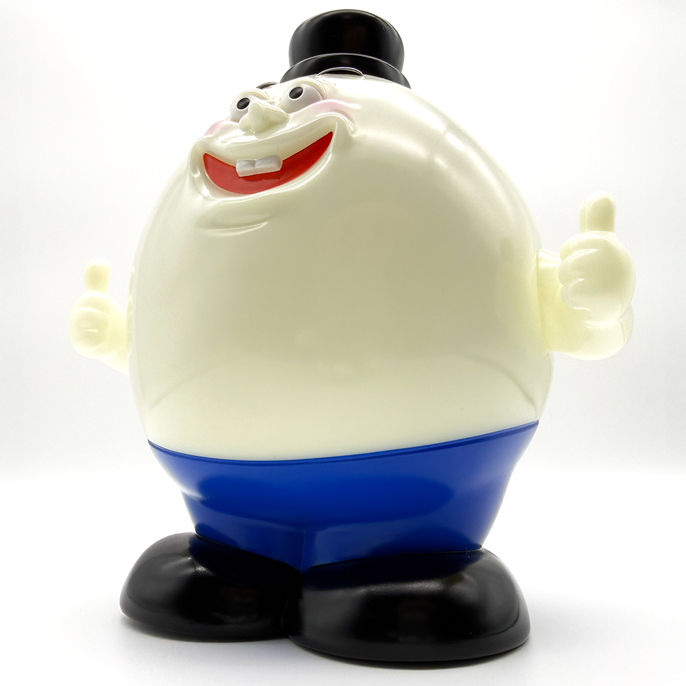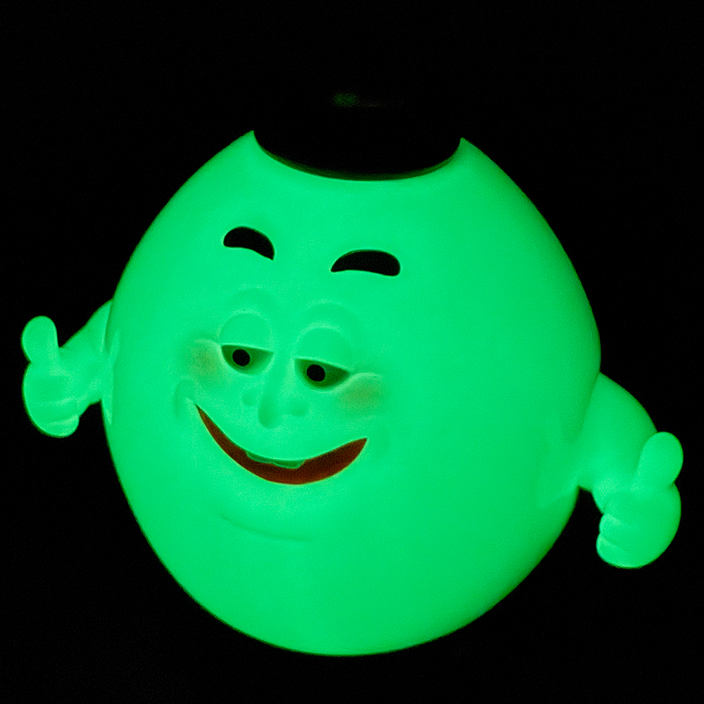 ”SWINGTOYS”さんの店舗でお迎えした”Mr.Awesome”です🥰 2作目となる本作は真っ白なボディとなっていて、だんだんと… ”たまご”に近づいているかのようです🤣 またハットと黒靴、青いパンツはSWINGメンバーの制服を着用しています🤔 さらに本作は蓄光になっていて暗闇でめちゃくちゃ光ります😍 しかも暗闇でも表情がしっかり見えますが、眼が少し暗く見えるためか… 少し怖い表情に見えてくるのは気のせいでしょうか😱