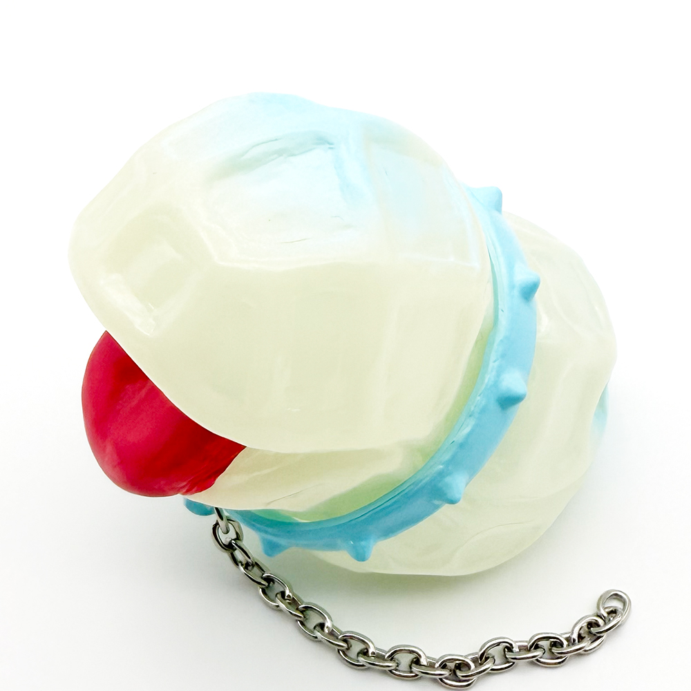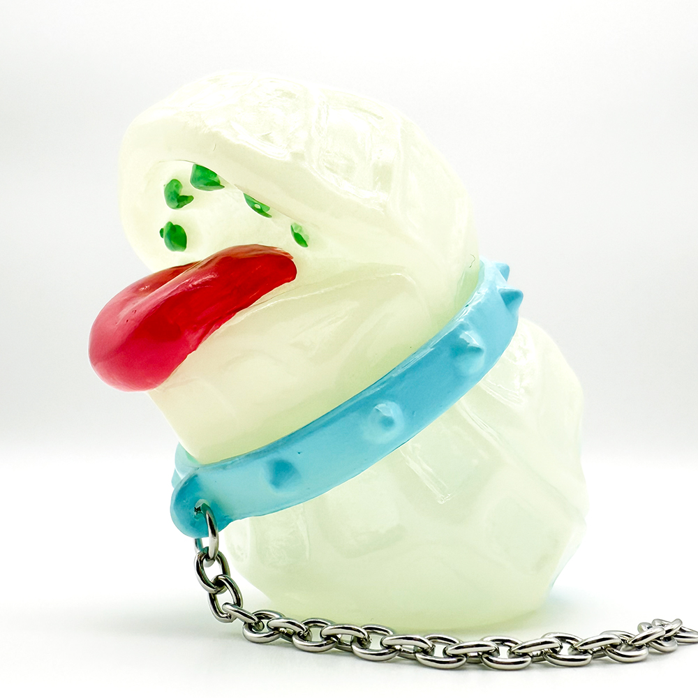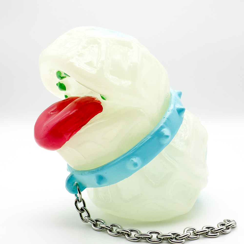”ワンコン Vol.5”でお迎えしたピヌです🥰 本作は涼し気なカラーの透き通った感じの作品になっています😲 しかも… 蓄光です😍 首輪は水色で透明感があり、後頭部とお尻に施された薄く青い塗装がアクセントになっています🤔 首輪のチェーンはキーホルダー形式ではなく飾りなので下向きに垂らすのがお勧めです🥰 そして暗闇での発光は強め✨ 通常時は涼し気で「氷のよう」に透明感があるのに対して、発光色はグリーンで全く異なる印象を受けます🤔