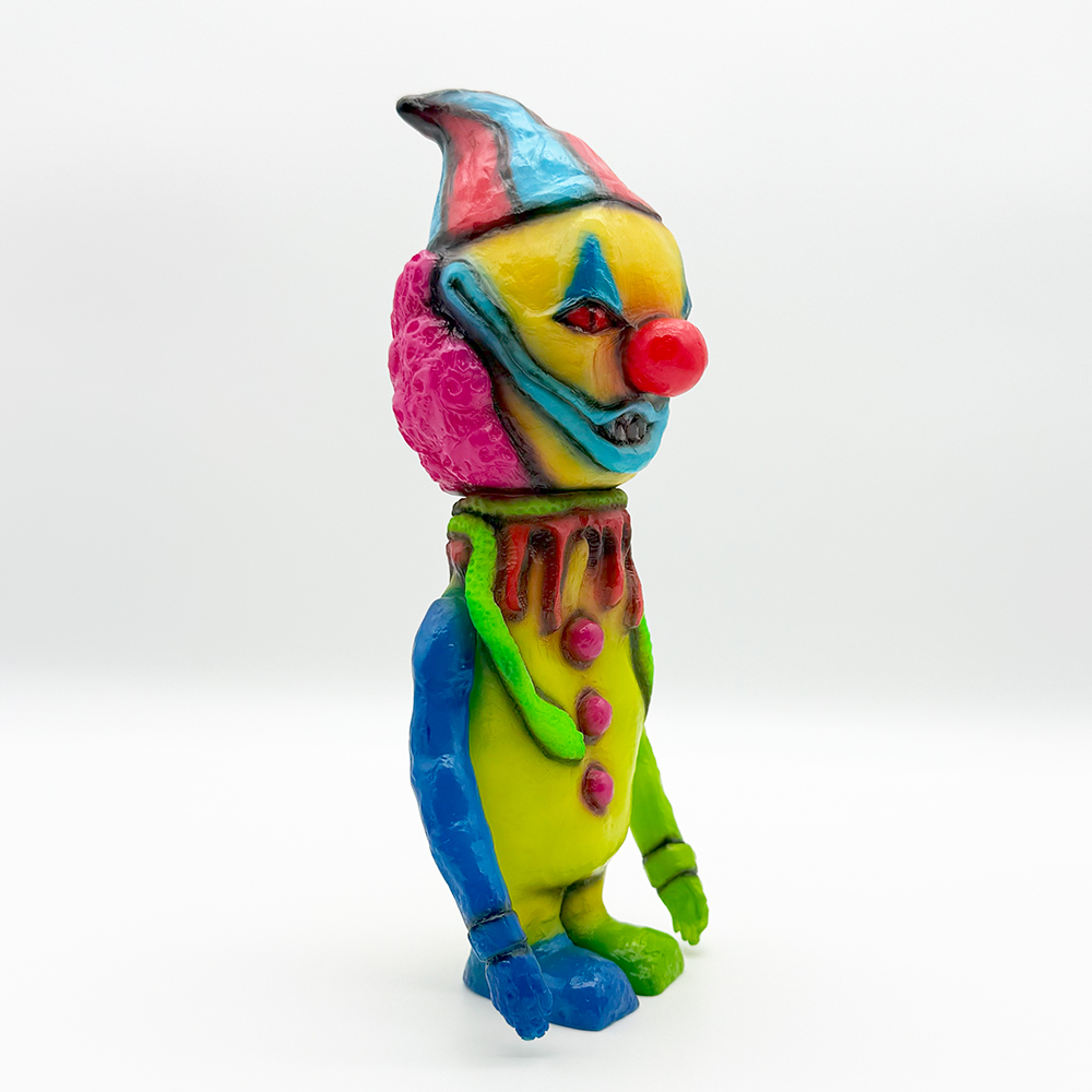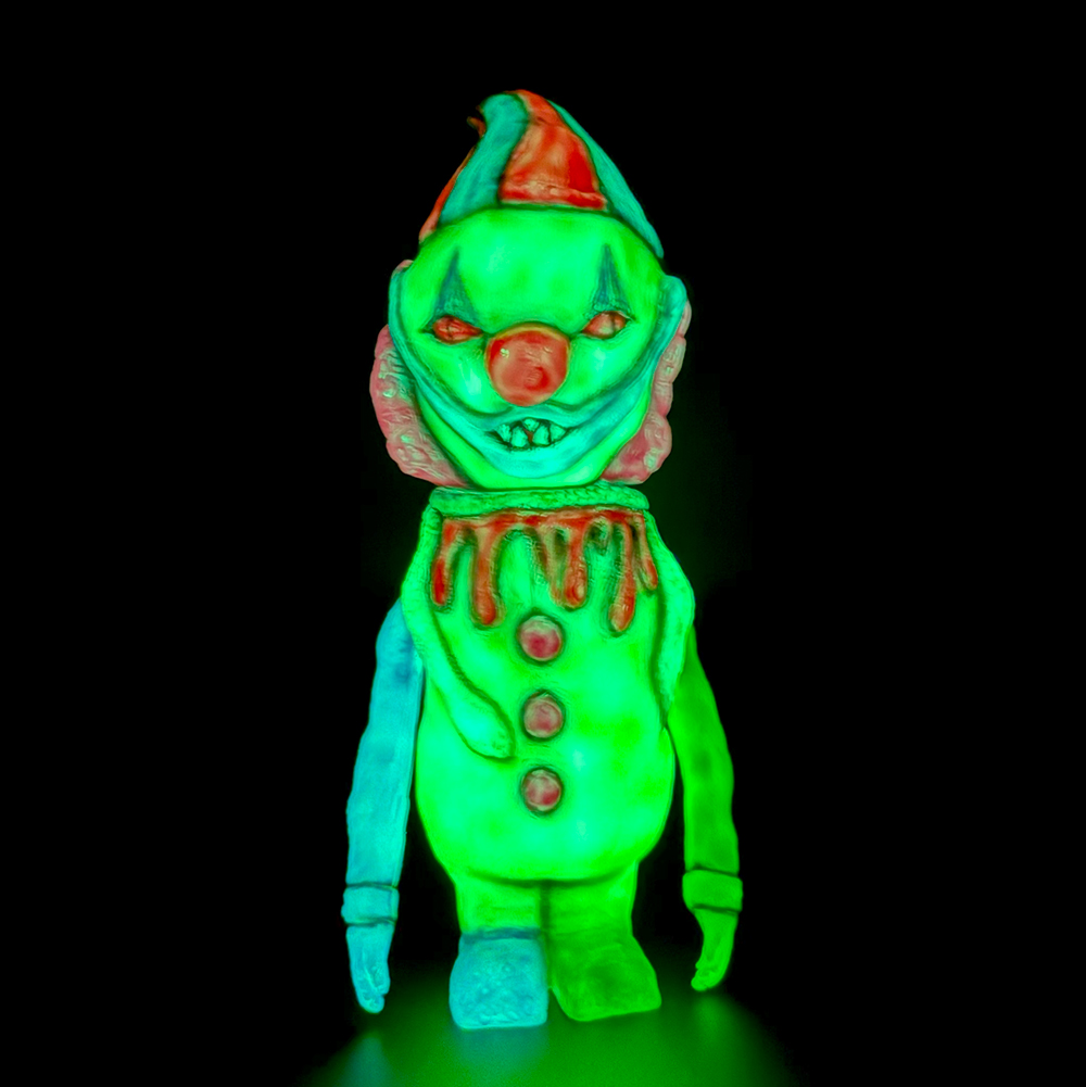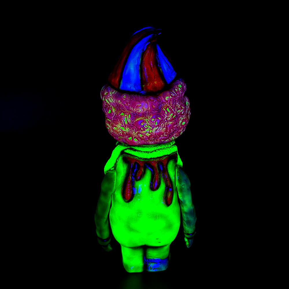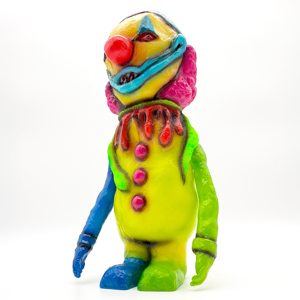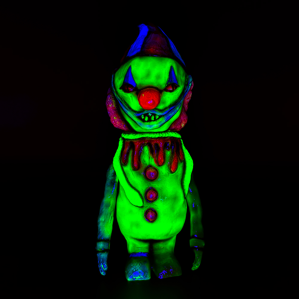 ”シカルナホビーフェス17”でお迎えしたイビツなポッくんです🥰ド派手でカラフルなデザインはピエロらしい雰囲気で楽しい雰囲気を感じさせてくれますが、逆に異世界感も醸し出していて怪しさや怖さも滲み出ています😱 円らで小さい瞳は真っ赤に染まり、想像以上に眼力もあります🤔 しかも本作は蓄光となっていて暗闇でもカラフルなデザインそのままに怪しく光ります🥰