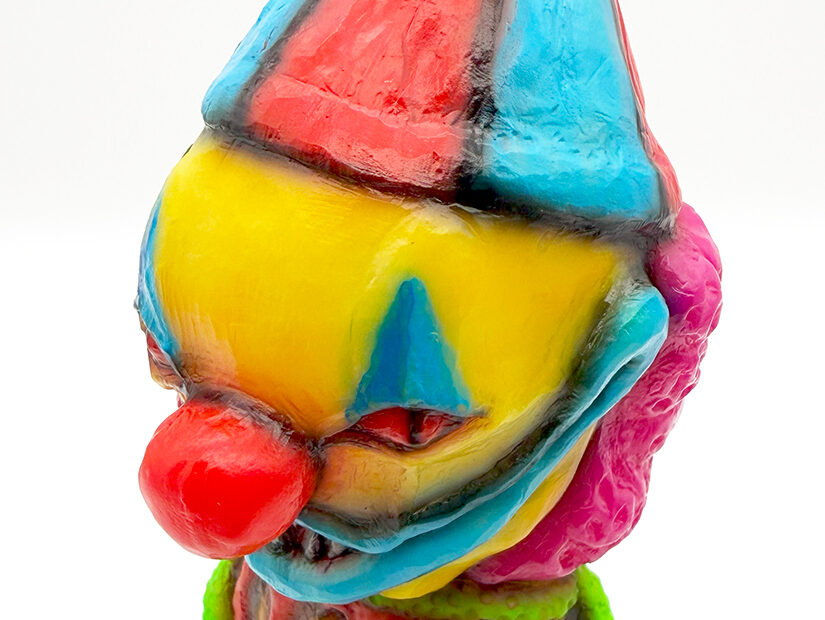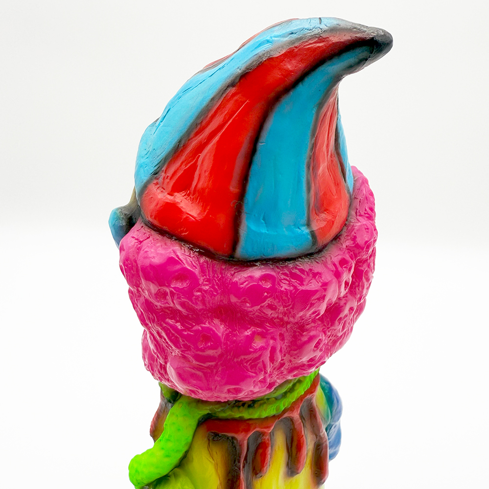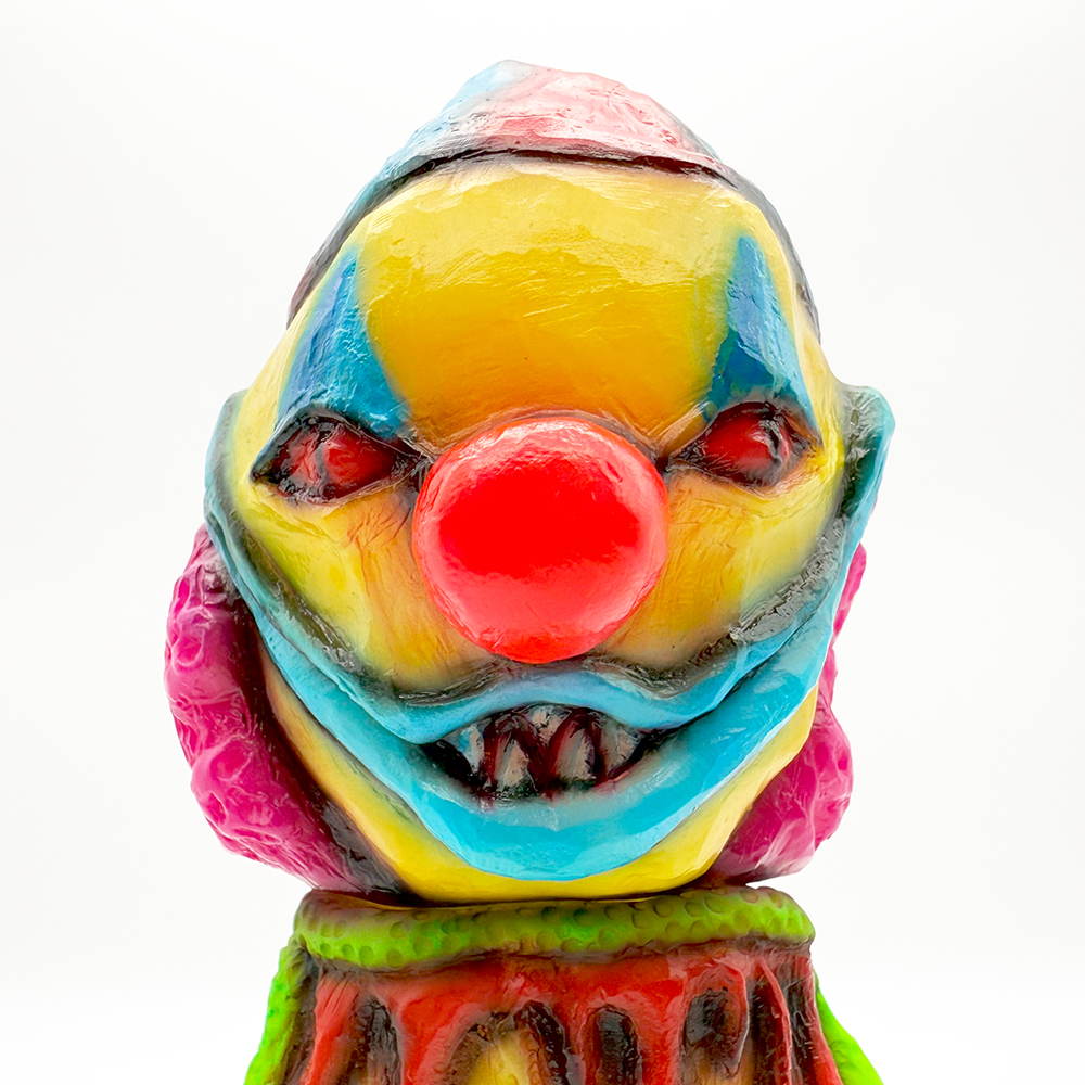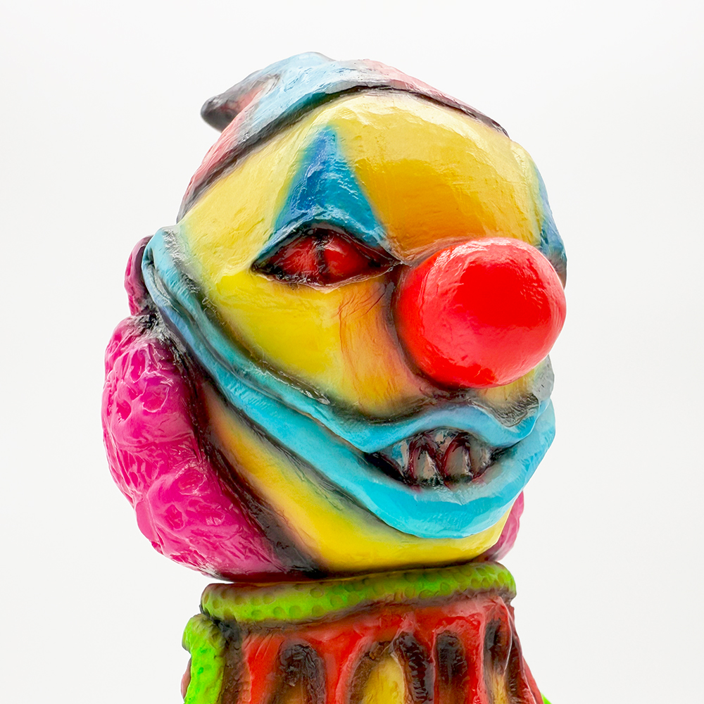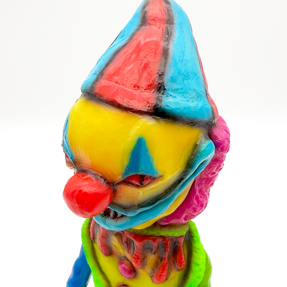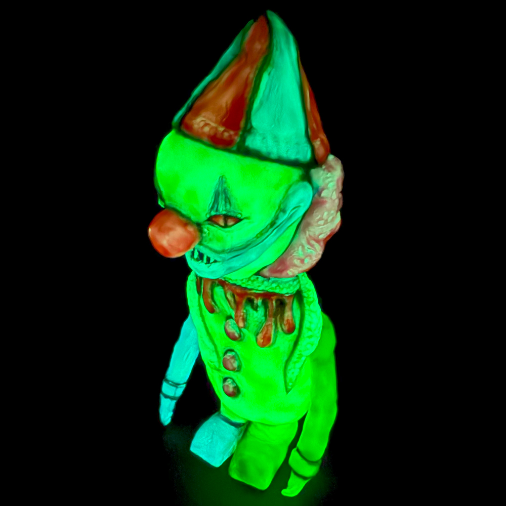 ”シカルナホビーフェス17”でお迎えしたイビツなポッくんです🥰ド派手でカラフルなデザインはピエロらしい雰囲気で楽しい雰囲気を感じさせてくれますが、逆に異世界感も醸し出していて怪しさや怖さも滲み出ています😱 円らで小さい瞳は真っ赤に染まり、想像以上に眼力もあります🤔 しかも本作は蓄光となっていて暗闇でもカラフルなデザインそのままに怪しく光ります🥰