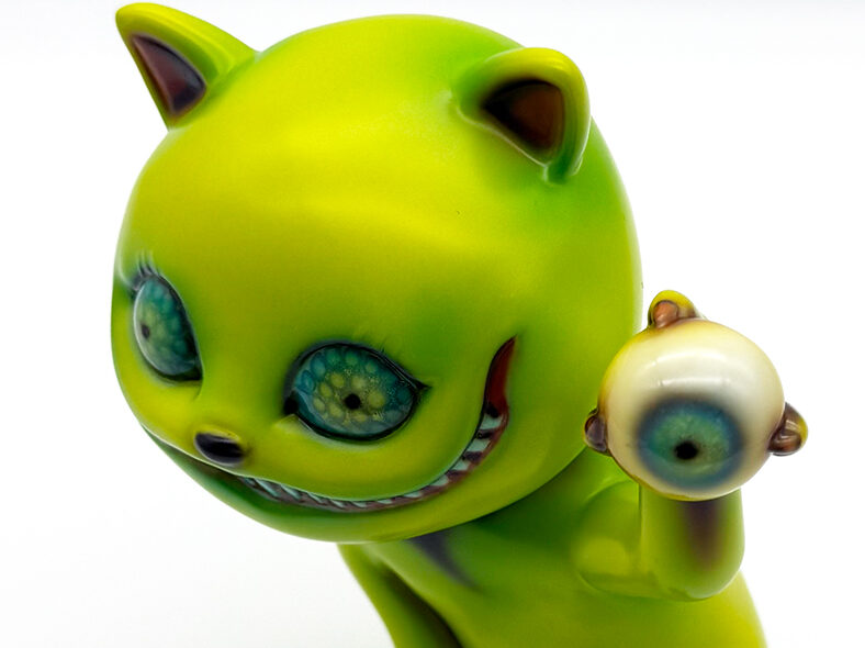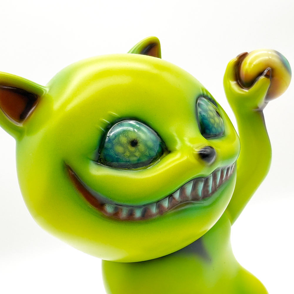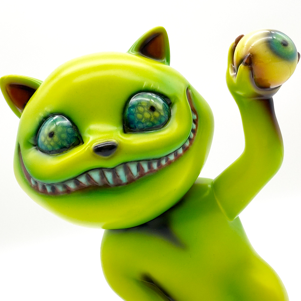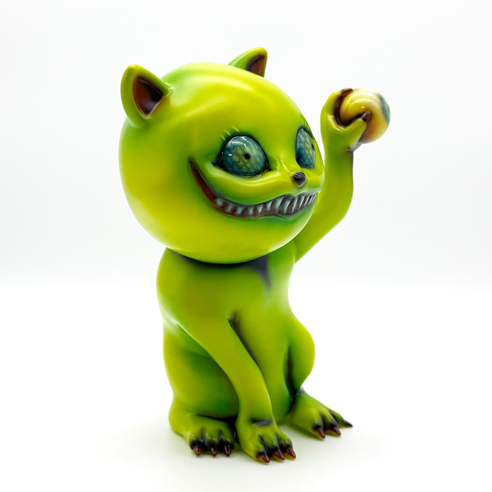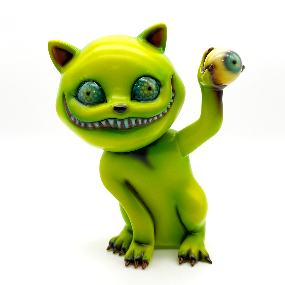 ”ワンコン Vol.5”でお迎えしたタマです🥰 ついに登場!目玉を鷲掴みにしているタマです😲 これにより一気にホラー寄りになり、表情もどこか悪魔的に見える気がしますね😱見開いた眼はエメラルドグリーンでドット柄が施されていることで輝いて見えます✨さらに暗闇でブラックライトを当てると両眼と鷲掴みにした目玉が光ります😊 そしてその光を受けて全身もぼんやりと照らされて、より恐怖感と悪魔的な印象が増してきます😱