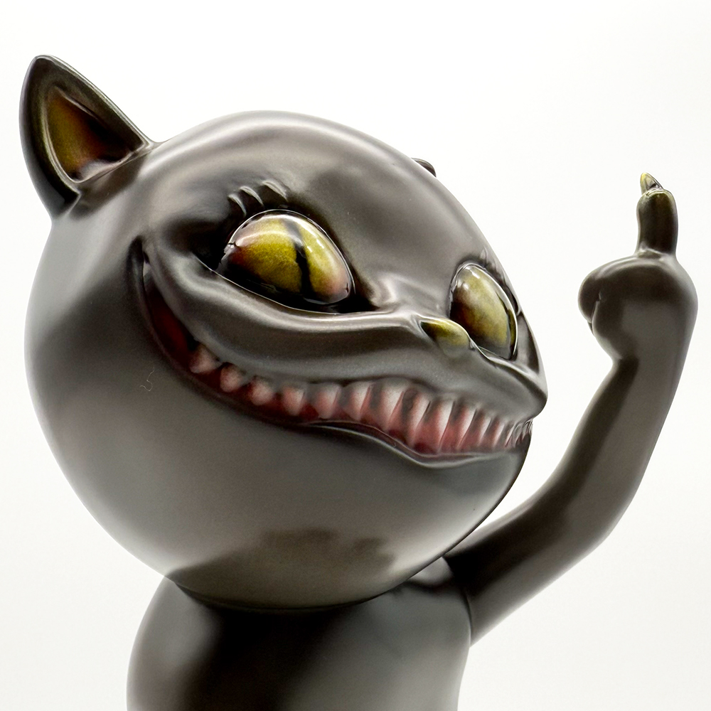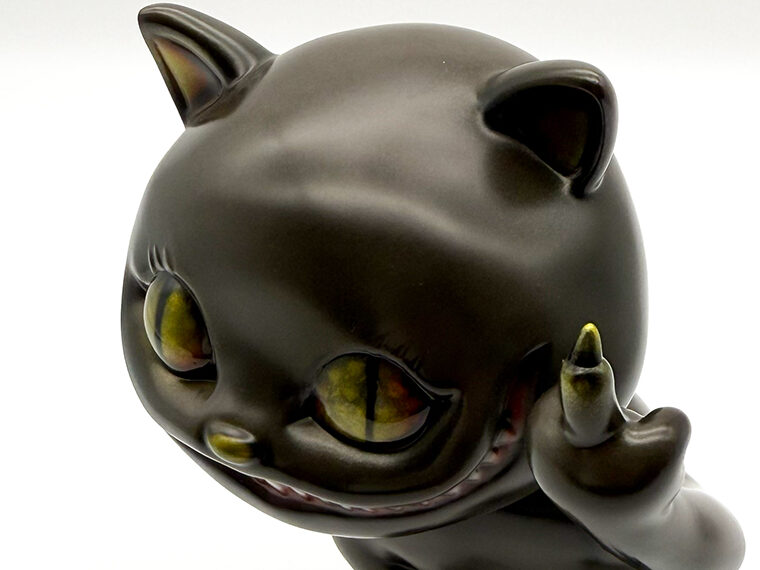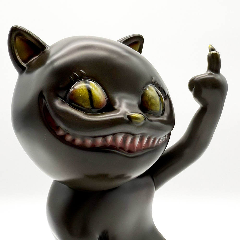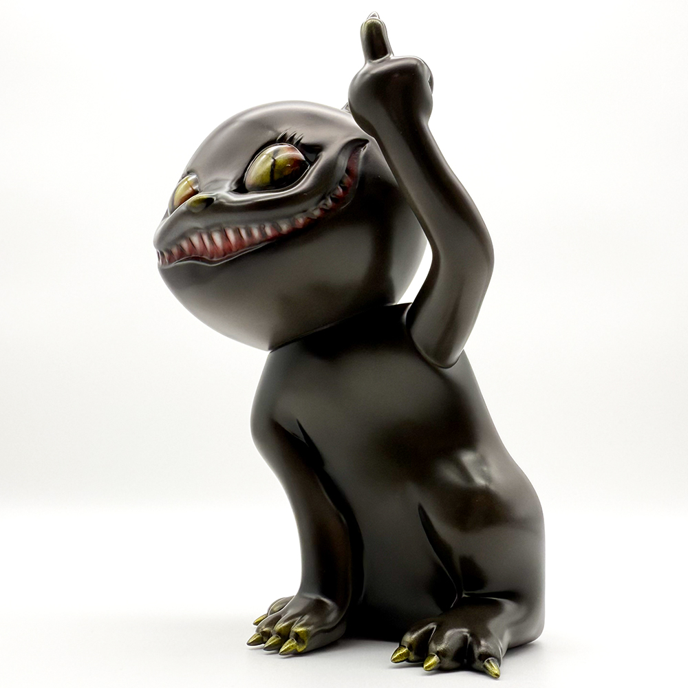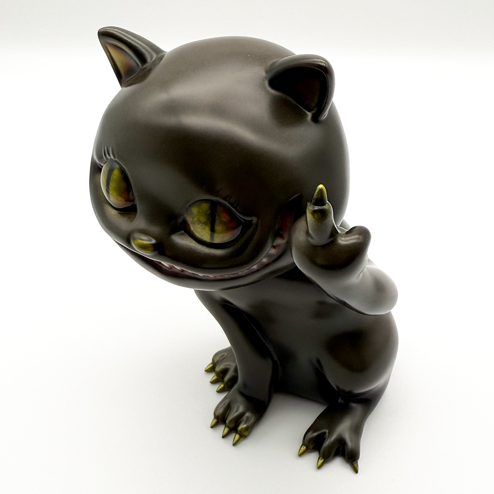 ”創作ソフビ決起集会 第8回”でお迎えしたタマです🥰 黒猫バージョンのタマですが、真っ黒ではなくダークグレーっぽいカラーリングになっているため、口元や身体の陰影が造形を立体的に見せてくれます🤔 さらに全身の艶感や金色に光るネコ眼が黒猫の不吉さというよりも、むしろエレガントな雰囲気を醸し出しています🤔 また赤い口元から覗く白い歯が凶暴で悪そうな表情に見えてきます😱