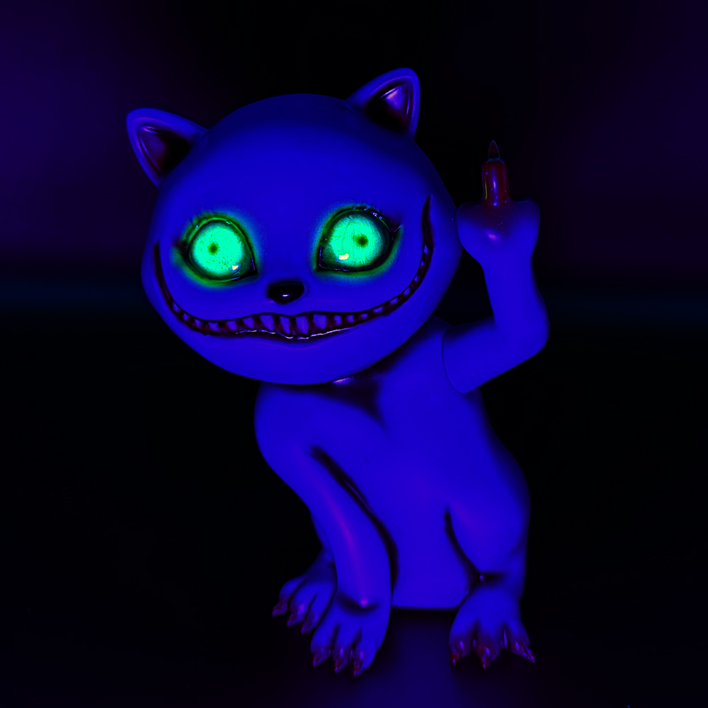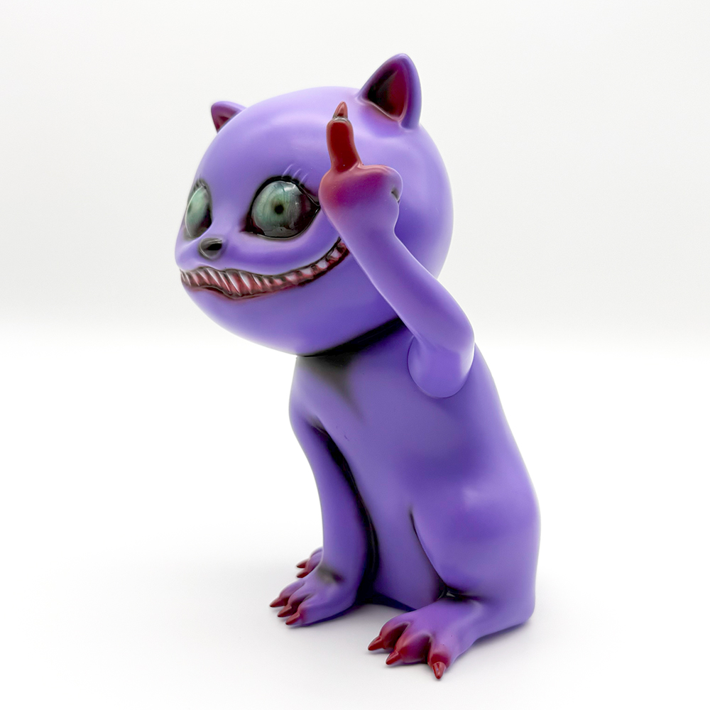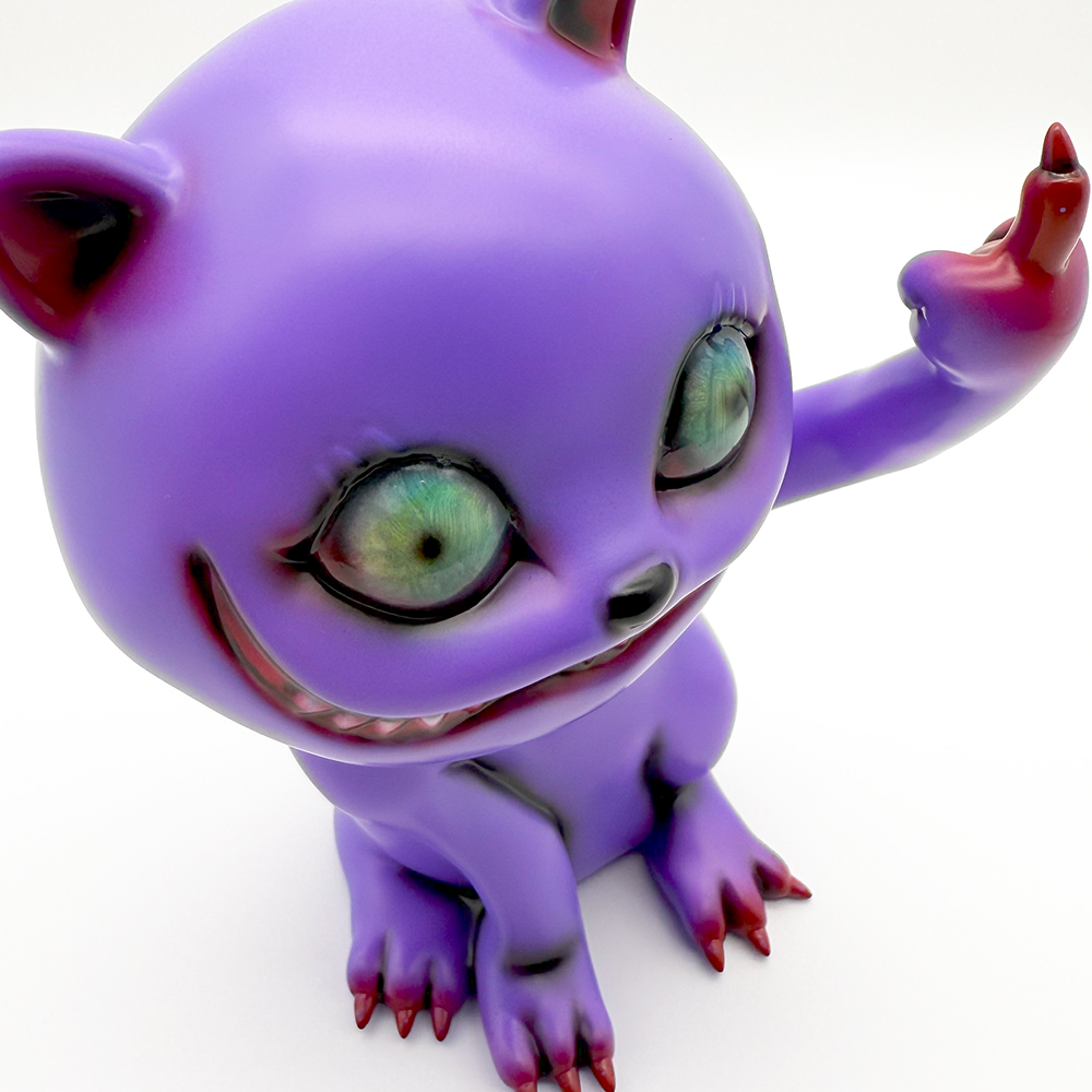 ”シカルナホビーフェス17”でお迎えしたタマ”Fackin’ Purple”です🥰3作目のタマは招き猫ではなく”挑発猫”となっています😲 攻撃的に見開いた眼はワルな感じが滲み出たイイ表情をしていますね🤔 瞳は初めての「ゾンビ眼」となっていて猫目ではないからこそ感情が凄く伝わってきます😊 また暗闇でブラックライトを当てると瞳が怪し気に光ります😲 色々な感情をあらわにするタマ… 可愛く怪しげな雰囲気が魅力です🥰