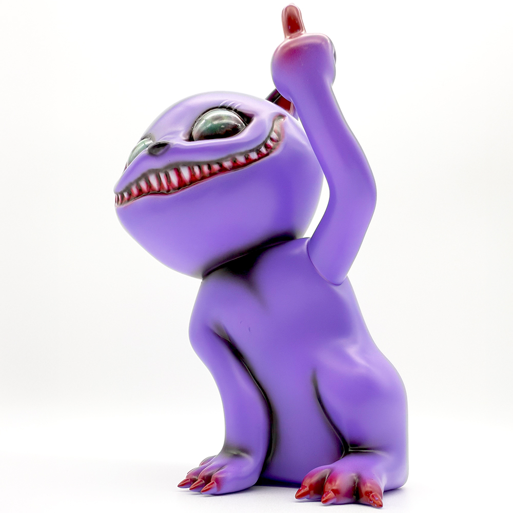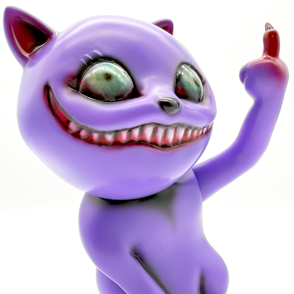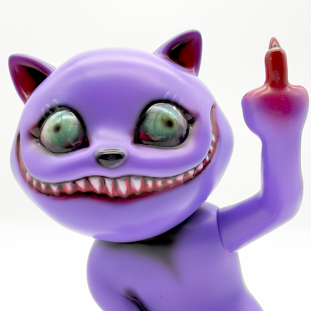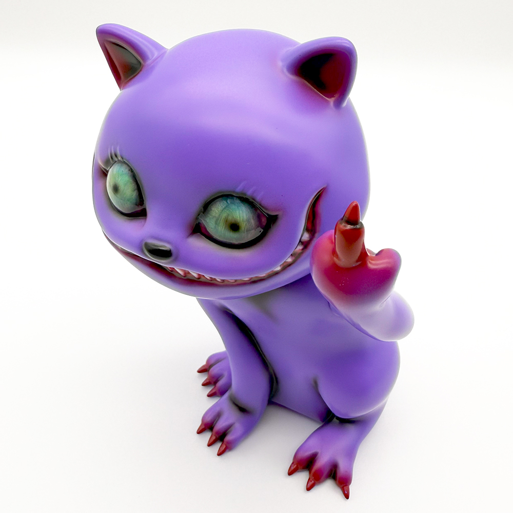 ”シカルナホビーフェス17”でお迎えしたタマ”Fackin’ Purple”です🥰3作目のタマは招き猫ではなく”挑発猫”となっています😲 攻撃的に見開いた眼はワルな感じが滲み出たイイ表情をしていますね🤔 瞳は初めての「ゾンビ眼」となっていて猫目ではないからこそ感情が凄く伝わってきます😊 また暗闇でブラックライトを当てると瞳が怪し気に光ります😲 色々な感情をあらわにするタマ… 可愛く怪しげな雰囲気が魅力です🥰