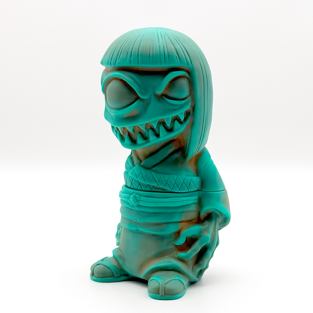 下北沢で開催されたかっこわらい雑貨店さんの個展”MAD UNIVERSE”で販売されたよしこの素体です🥰 綺麗なターコイズにブラウンのマーブルっぽい感じで陰影が付いているような仕上がりになっています😲 まるで銅像のような佇まいは芸術的にすら感じますね😊 また本作と同時に”バリ付き素体”も販売されたので”ガチ勢”には嬉しいサプライズにもなりました🥰 ※バリ付きの画像はブログ記事の中で紹介しています